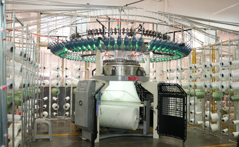 We have two of our own knitting and weaving factories, as well as one dyeing factory.